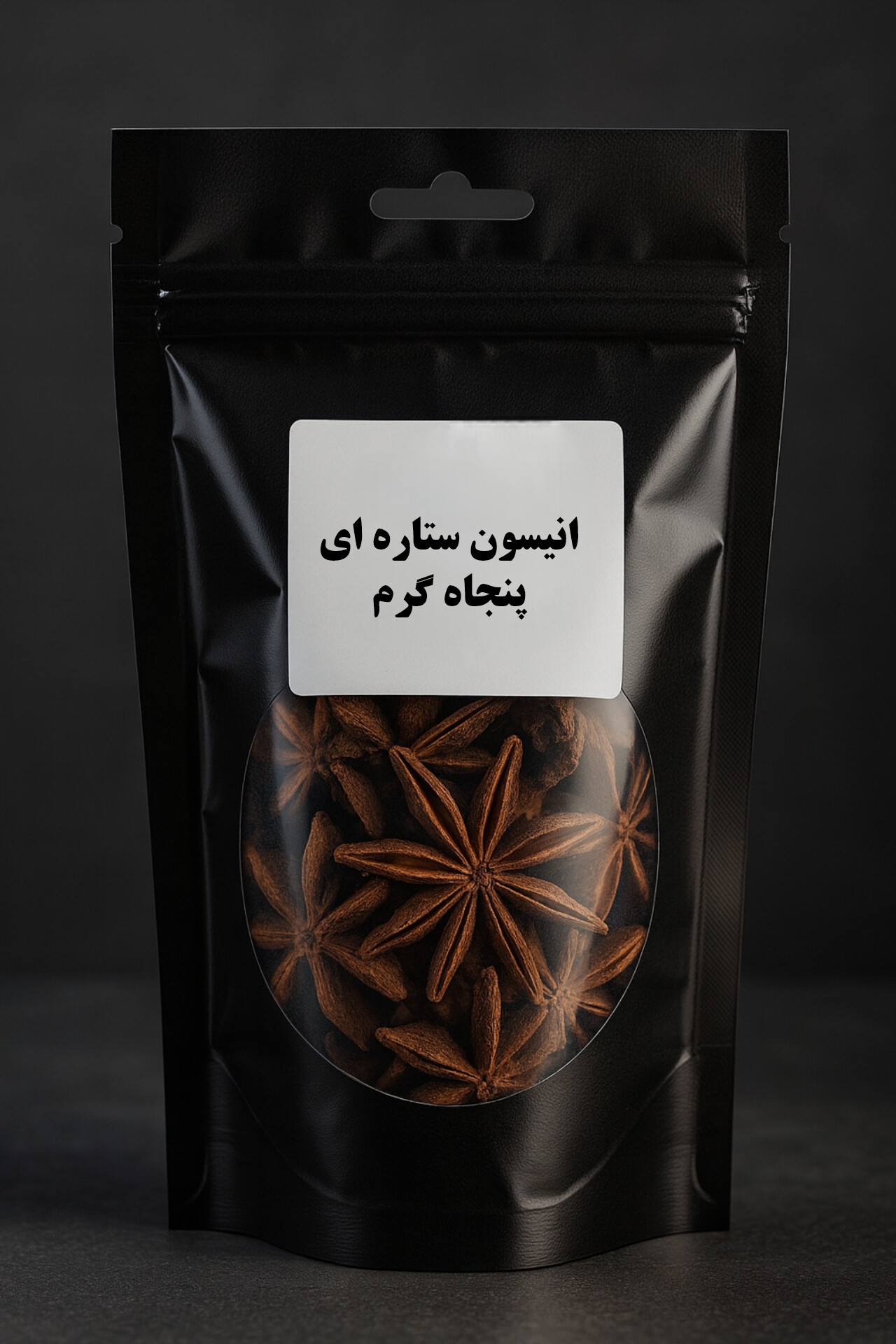 انیسون ستاره ای پنجاه گرم صدوپنجاه تومن مناسب برای نیم لیتر۱۵۰٬۰۰۰ تومان